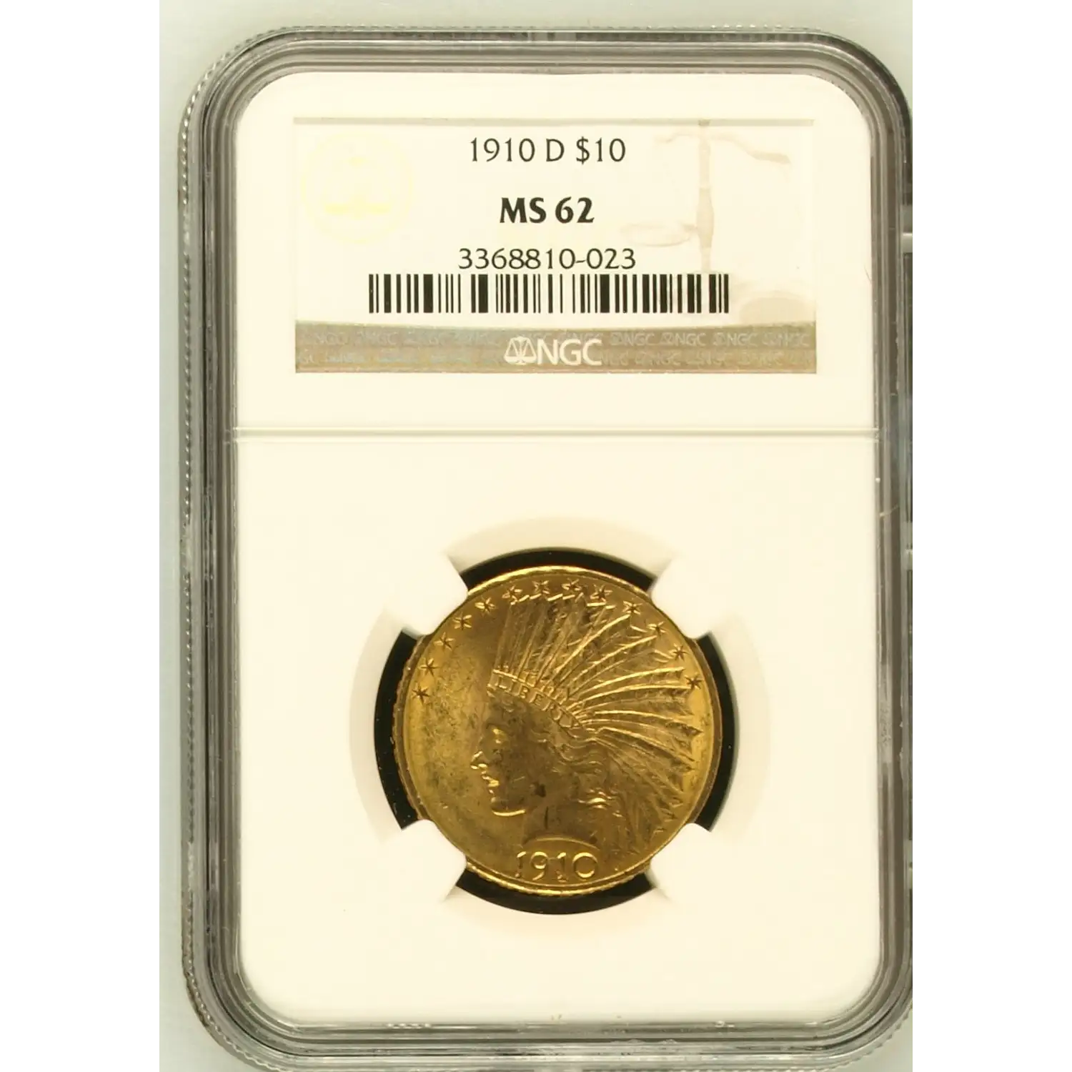 1910-D Gold Eagles $10 Indian Head NGC MS-62