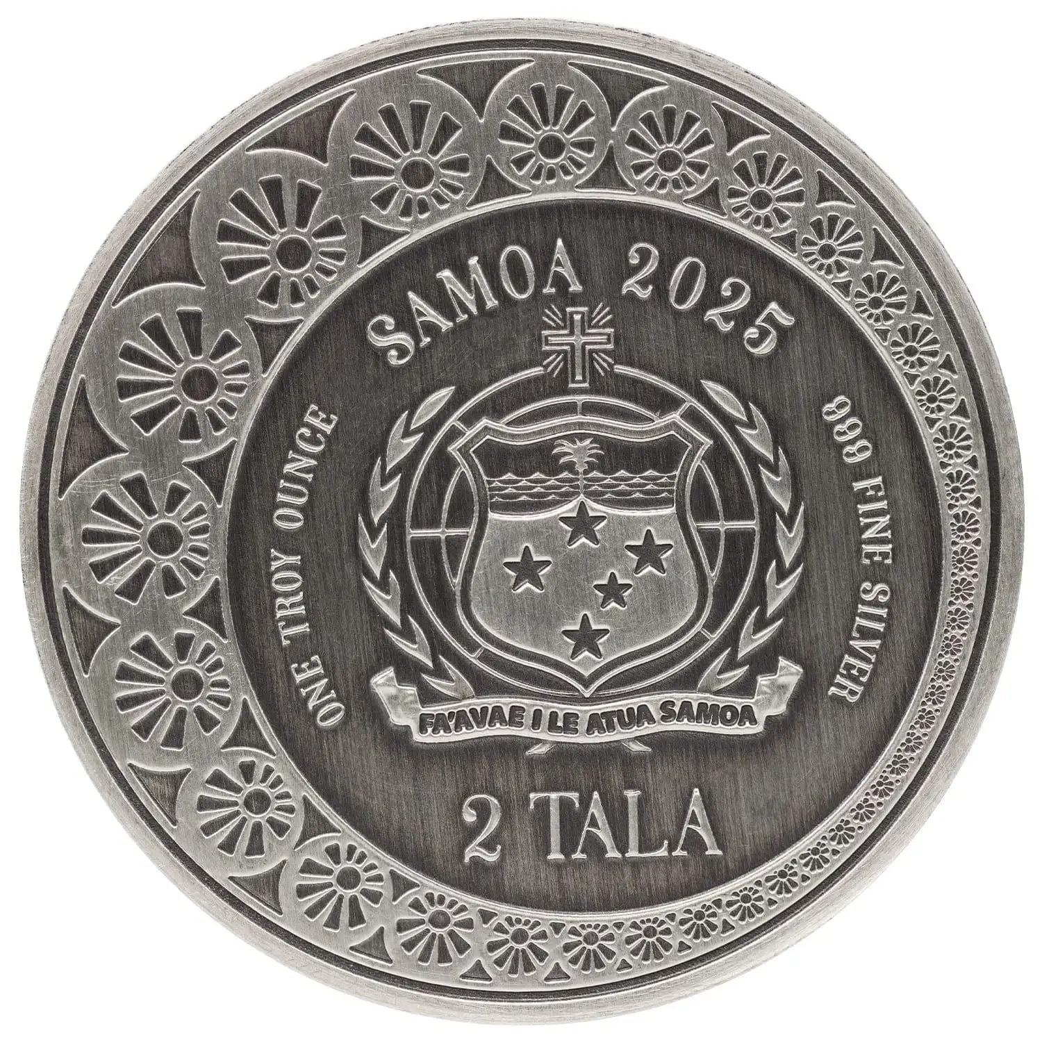 The 2025 edition of the Samoan Mermaid & Pearl coin showcases superior craftsmanship, with an antique finish that adds depth and character to each individual piece. The artwork reflects the elegance of the mermaid, seamlessly integrated with the shimmering pearl, symbolizing purity and beauty. This coin is not just an investment in silver; it is also a celebration of enchanting folklore and artistry.