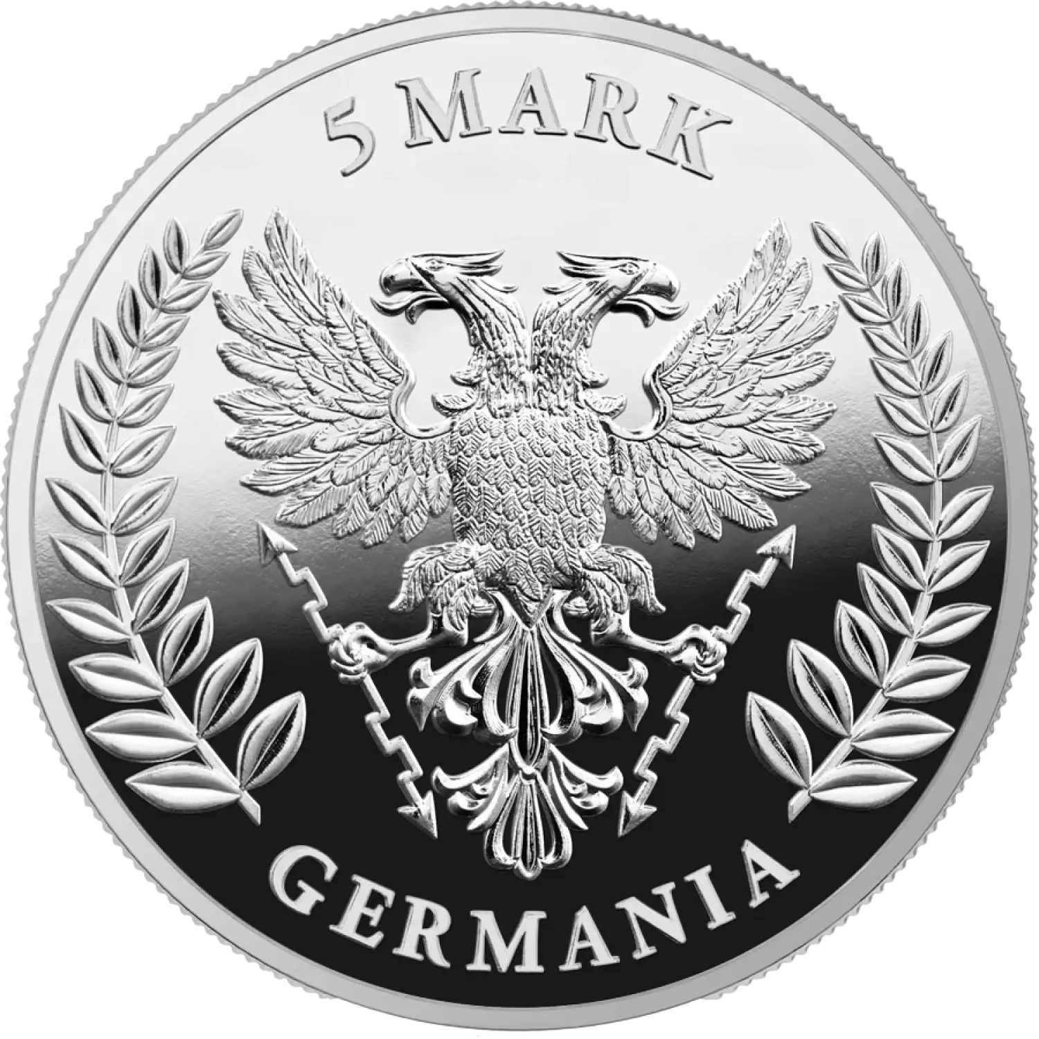 Each coin tells a story, featuring the iconic allegory of Germania, symbolizing German unity and freedom, surrounded by meticulously detailed engravings. The reverse displays the Germania coat of arms, flanked by two majestic eagles, representing strength and resilience. This coin is not only a piece of currency but a work of art that connects the past with the present.