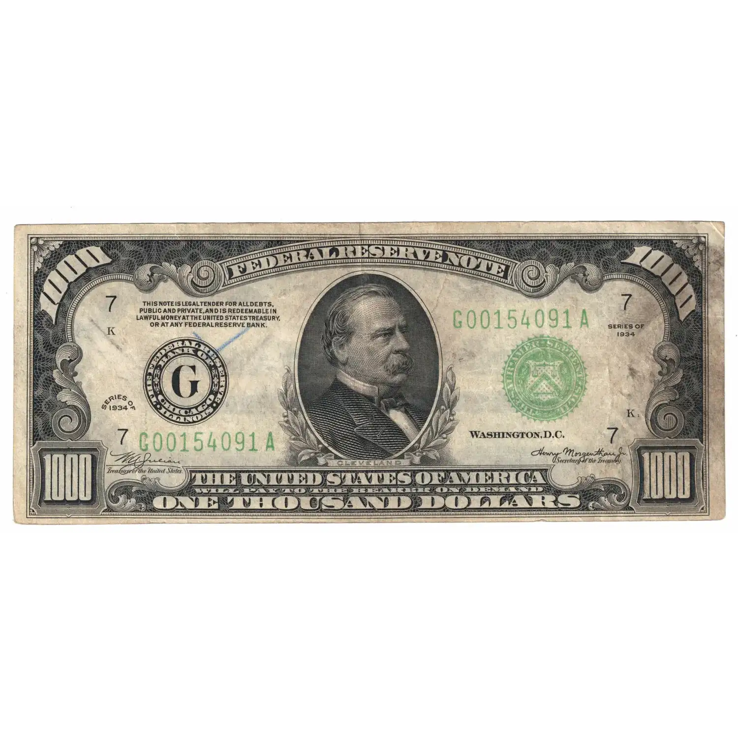 $1,000 1934 MULE One Thousand Dollar Bill High Denomination Note Chicago 2211-Gm Dealer 35