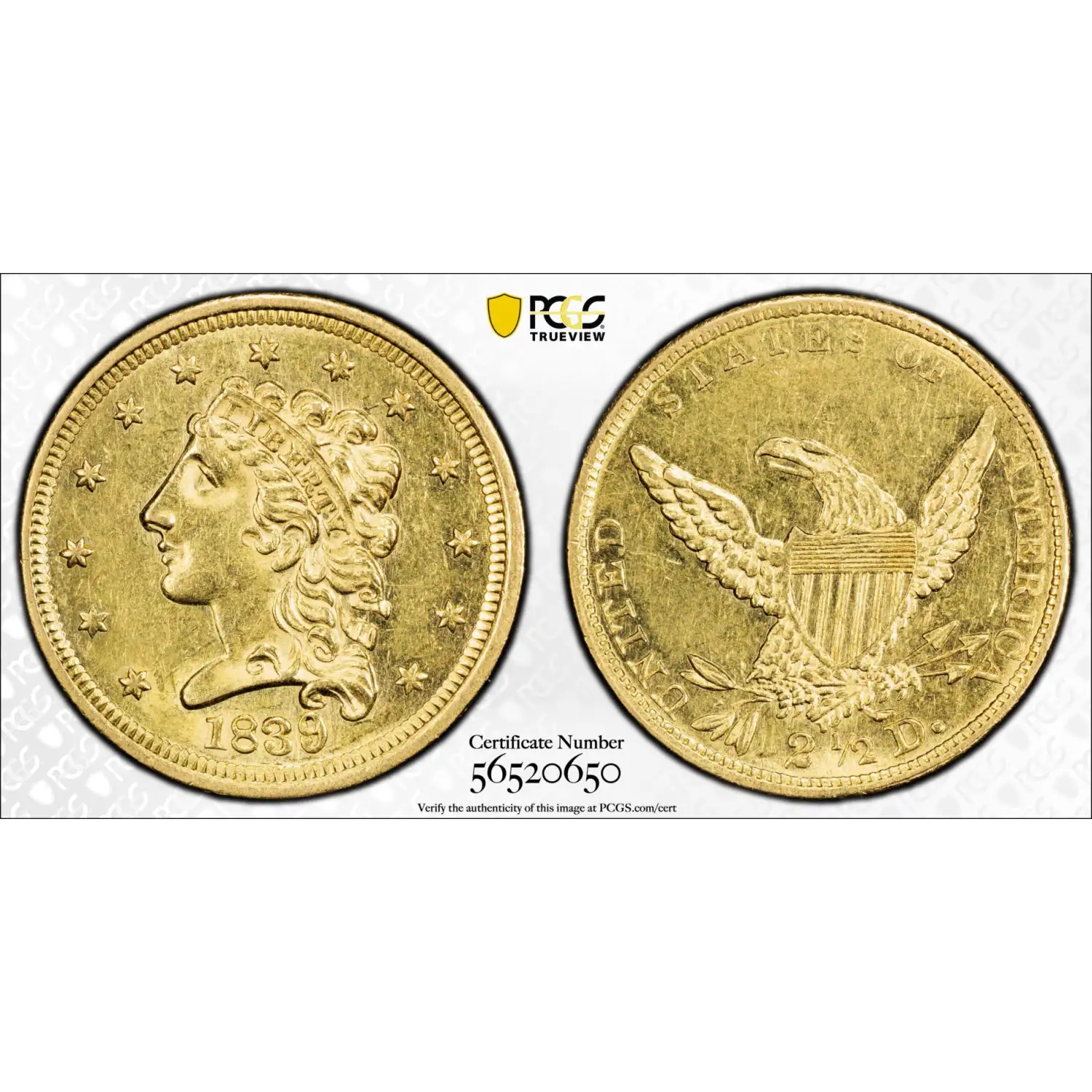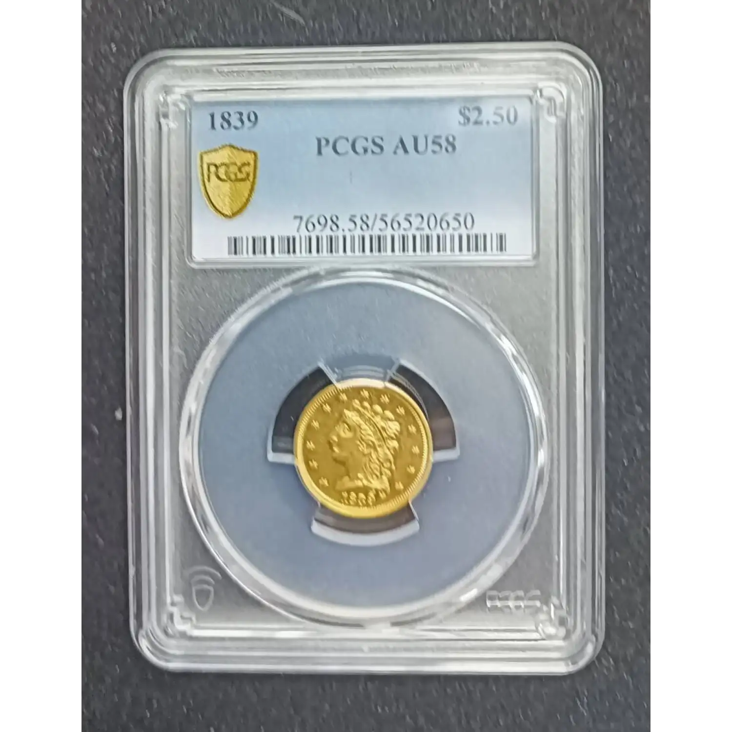 1839 Gold Quarter Eagles Classic Head, No Motto on Reverse PCGS AU-58 No Motto