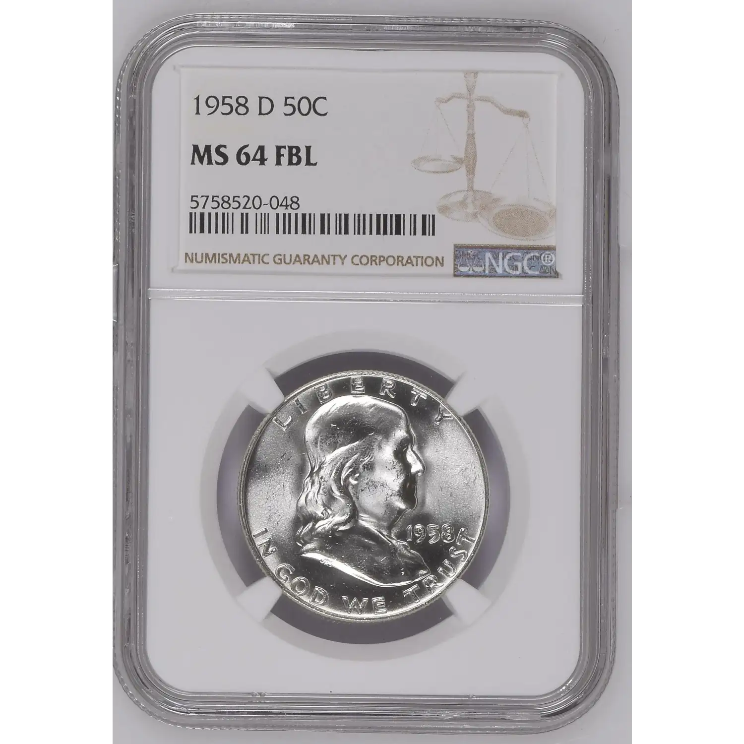 1958-D Half Dollars Franklin NGC MS-64 FBL