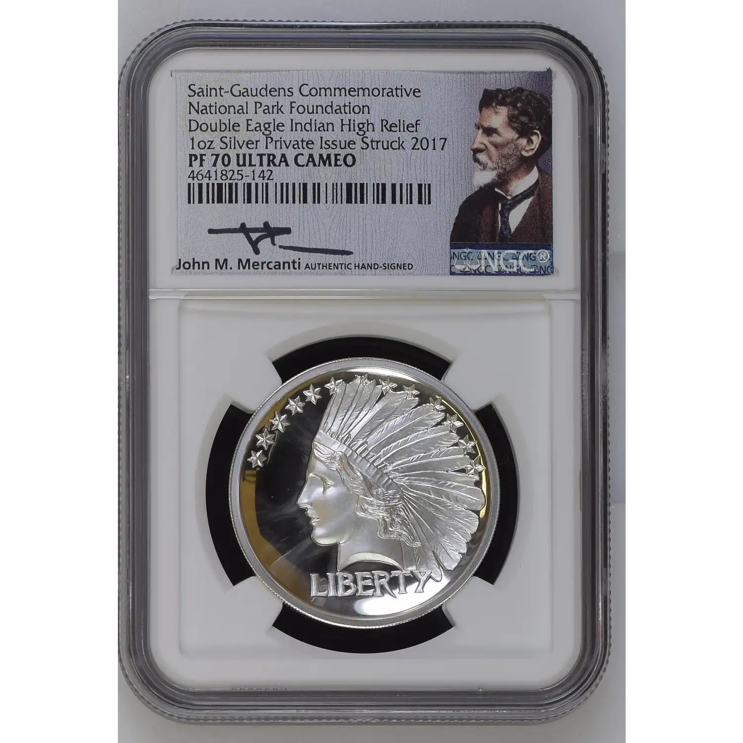 2017 2017 Silver Double Eagle Indian UHR Saint-Gaudens NPF Commem 1oz NGC PF-70 ULTRA CAMEO Double Eagle Indian UHR Saint-Gaudens NPF Commem Mercanti Signed