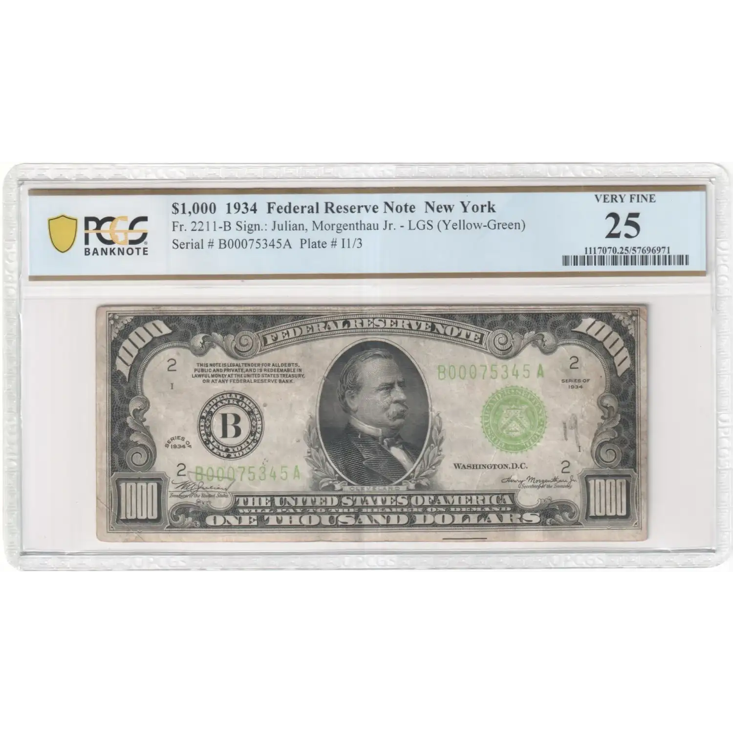 $1,000 1934 High Denomination Notes 2211-B